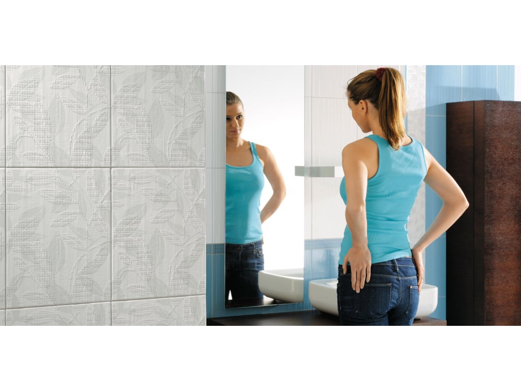 Základem hravé série za skvělou cenu jsou obkládačky 25 x 33 cm s jemně reliéfním povrchem, které svou strukturou připomínají přírodní povrch, kůru. Imitace přírodního povrchu předurčila také moderní teplou škálu pastelových barev – oranžová, zelená a kombinační béžová. Chladnější tóny nabízí modrá varianta s kombinační bílou obkládačkou. Protože se stále těší oblibě celoplošné dekorace „ala“ tapeta, nabízí tato série celoplošný dekor listů.