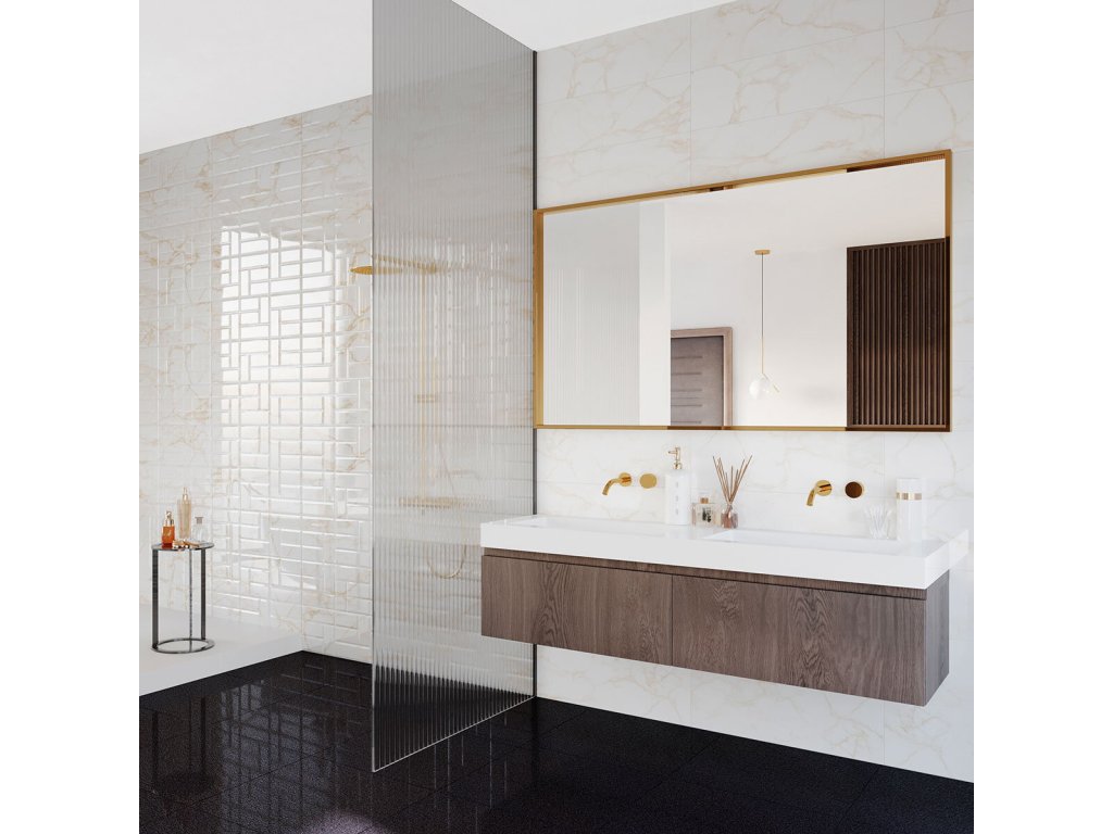 Povrch obkladů Royal Bianca má přírodní mramorovou strukturu ve dvou barvách: zlaté a šedé. Kolekce obkladů Royal Bianca se vyznačuje strukturovaným stylem obkladů, rovněž s mírnou mramorovou strukturou. Neobvyklé uspořádání strukturálních obkladů dodává interiéru hloubku a charakter.