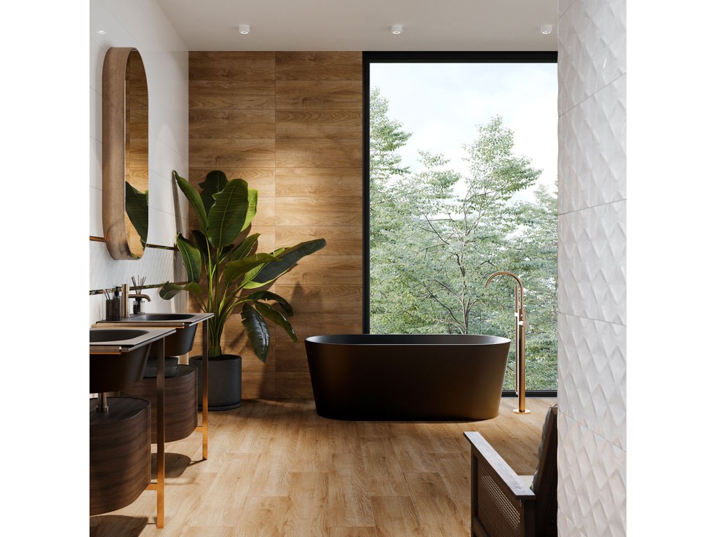Jedná se o nadčasovou kolekci obkladů s matným a kamenným povrchem. Kolekce obsahuje dvě základní dlaždice ve dvou podobách. První je hladký a druhý má na povrchu podél delšího okraje jemné strukturální proužky. Použití těchto dvou dlaždic z kolekce Travertin Bianca udrží interiér v moderním a minimalistickém stylu. Černé doplňky dodají aranžmá charakter.