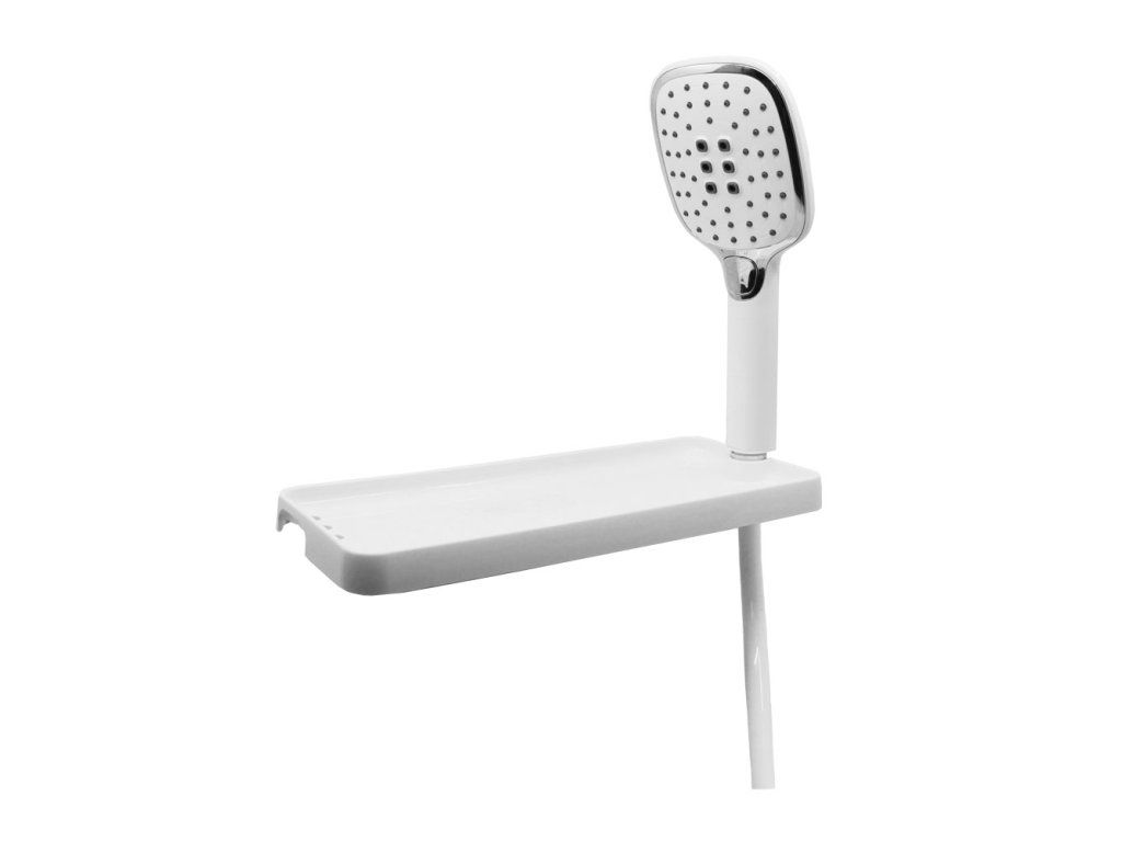 Obdélníková plastová police s háčky a držákem ruční sprchy.Materiál: plast.