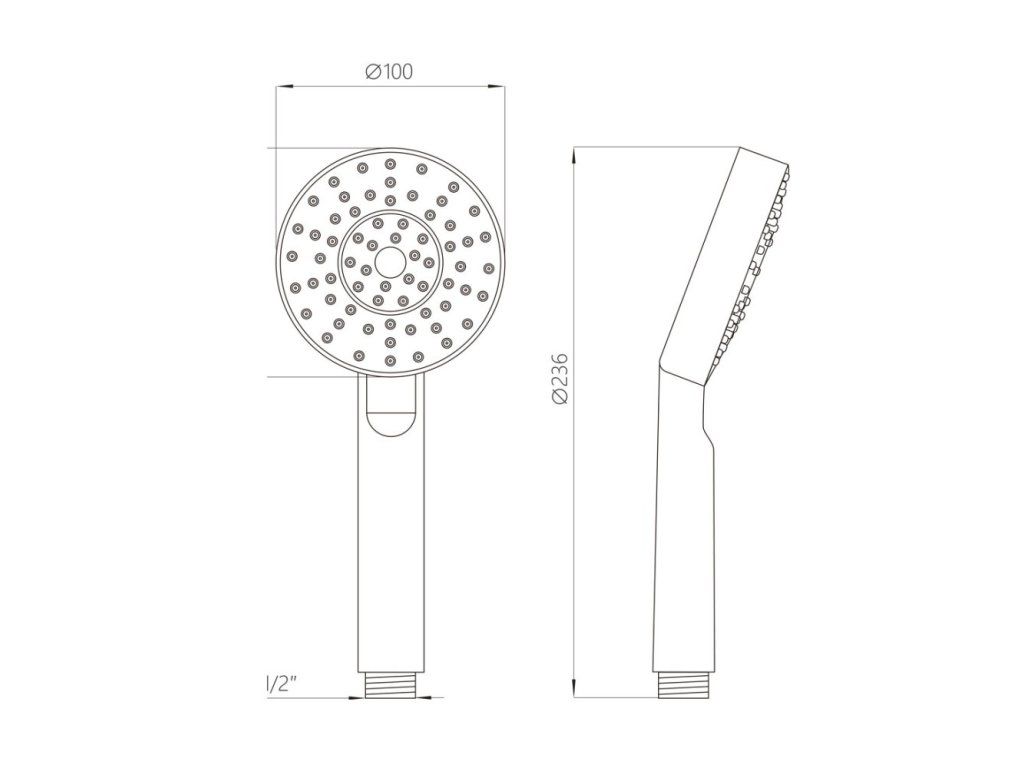 Jednopolohová sprchová hlavice se vyznačuje moderním designem, vysokou variabilitou a především umožňuje téměř libovolnou kombinaci s příslušenstvím sprchového programu. Sprcha je osazena standardním závitem 1/2" pro připojení na sprchovou hadici.Funkce sprchy: