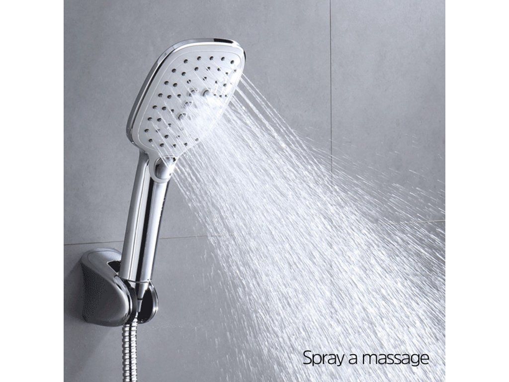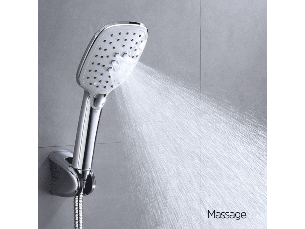 Třípolohová sprchová hlavice se vyznačuje moderním designem, vysokou variabilitou a především umožňuje téměř libovolnou kombinaci s příslušenstvím sprchového programu. Sprcha je osazena standardním závitem 1/2" pro připojení na sprchovou hadici.Funkce sprchy: