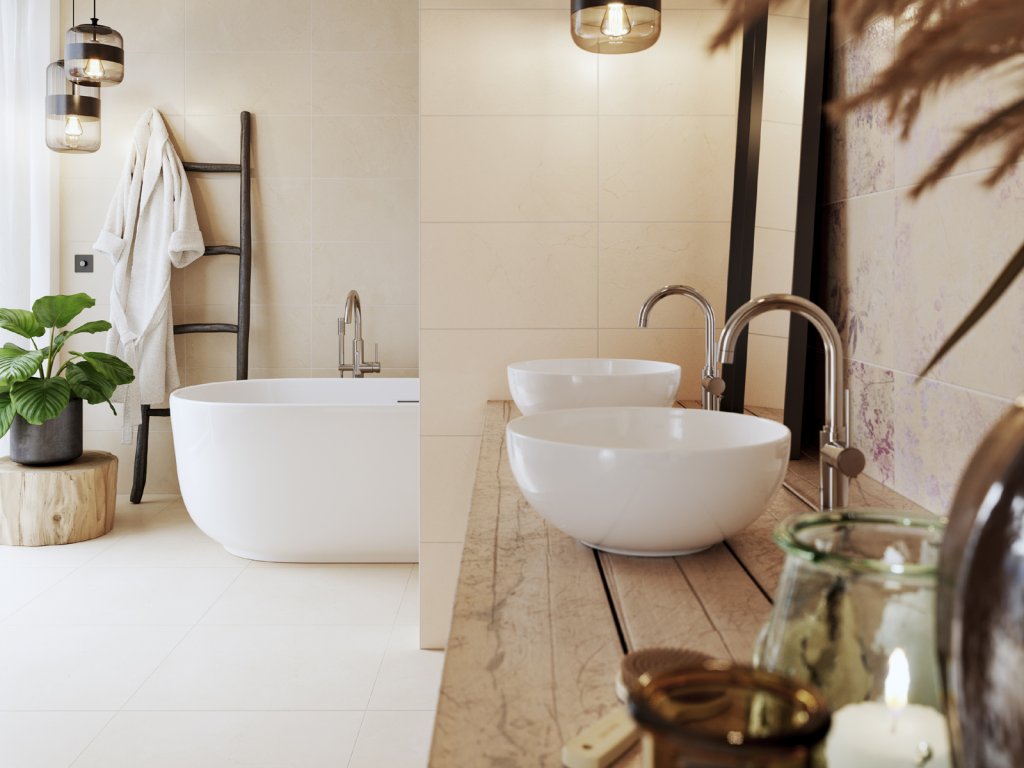 Povrch obkládaček vznikl harmonickým spojením jemného léty prověřeného mramorování s přednostmi novodobých postupů. S působivými výsledky: Díky moderním technologiím chráníme přírodu. Decentní mramorovaný design v béžových tónech má kombinace nerektifikovaných obkládaček 30 x 60 a 20 x 40 cm s dlaždicí formátu 60 x 60 cm. Květinové vzory na dekoracích 30 x 60 cm v jemných modrofialových barvách s využitím technologie DryFix, dodávají dekorované obkládačce strukturu a vytváří osobitý kontrast. K dispozici je řezaná (5 x 5 cm) i falešná mozaika 2,5 x 2,5 cm ve formátu 20 x 40 cm. Rektifikované dlaždice 60 x 60 cm ve stejném designu doplněné o schodovku a sokl zajistí řešení bez limitů.