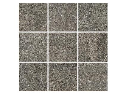 RAKO dlažba v šedé a černé barvě o rozměrech 10x10 cm s tloušťkou 10 mm a reliéfním matným povrchem. Imitace kamene Quarzit s glazováním, protiskluzností R 10 a odstínovým...