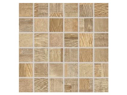 Mozaika RAKO v béžové a šedé barvě o rozměrech 30x30 cm s tloušťkou 8 mm a matným reliéfním povrchem imituje dřevo. Je glazovaná, s protiskluzností R 10 a odstínovým kolísáním...