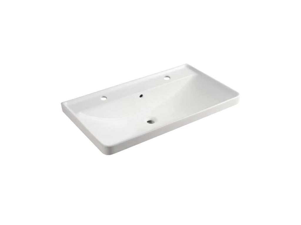 Zajímavostí je možnost volby mezi keramickým a litým umyvadlem, přičemž obě varianty jsou vybaveny dvěma otvory pro baterie a jednou výpustí – ideální řešení pro moderní koupelnu.