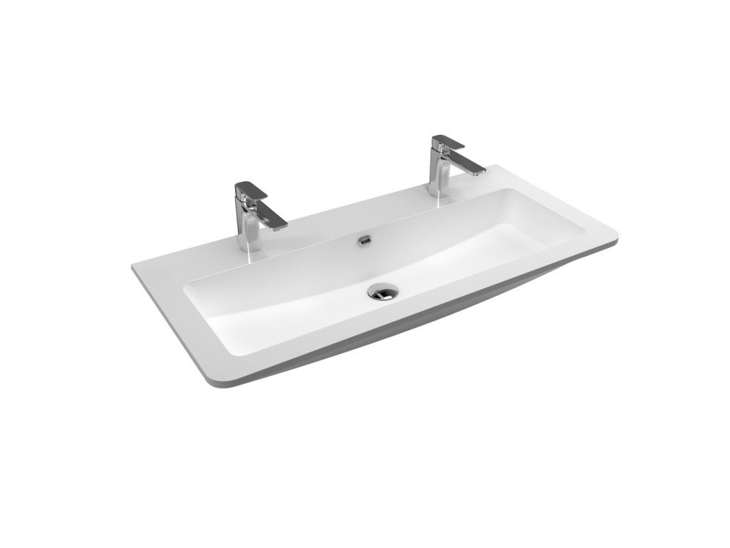 Zajímavostí je možnost volby mezi keramickým a litým umyvadlem, přičemž obě varianty jsou vybaveny dvěma otvory pro baterie a jednou výpustí – ideální řešení pro moderní koupelnu.