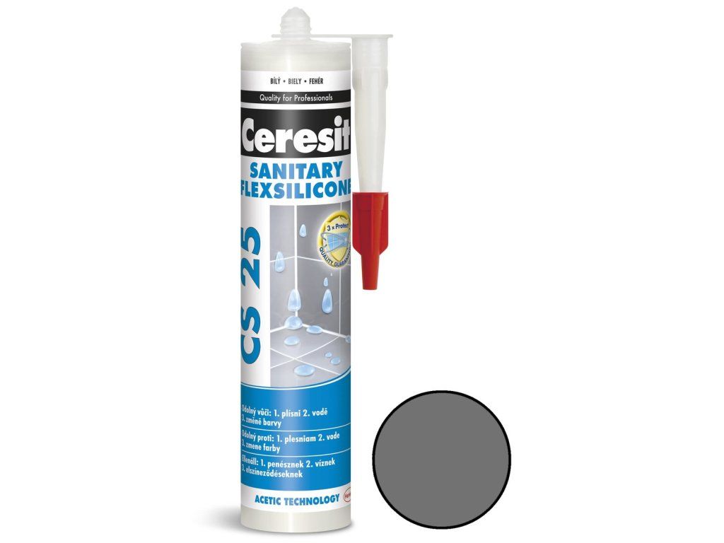 - Unikátní receptura TrioProtect chrání silikon před napadením plísněmi, houbami a jinými nežádoucími mikroorganizmy. Materiál má vynikající přídržnost k suchým a nesavým podkladům jako: sklo, keramika, porcelán apod. K vyplnění spár a prasklin ve zdivu, omítkách, mramorech, betonu a cementových potěrech použijte jiné tmely z řady Ceresit. Sanitární silikon Ceresit CS 25 je vhodný pro použití v nádržích na pitnou vodu.