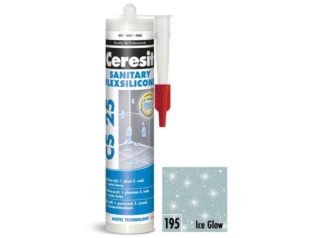 - Sanitární silikon Ceresit CS 25 je určen pro vyplnění dilatačních a spojovacích spár mezi keramickými obklady a dlažbou v rozích nebo ve styku stěn, podlah a k usazování zařizovacích předmětů v sanitární oblasti. Je určen k vyplňování spár tam, kde běžné spárovací hmoty vykazují trhliny a praskliny. Díky trvalé elasticitě a odolnosti proti vodě je vhodný do oblastí trvale zatížených vlhkostí, jako např.: kuchyně, sprchy, koupelny, toalety, balkóny, terasy apod.