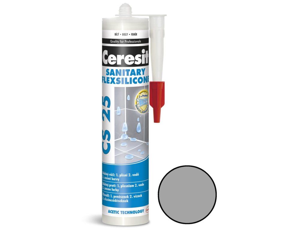 - Unikátní receptura TrioProtect chrání silikon před napadením plísněmi, houbami a jinými nežádoucími mikroorganizmy. Materiál má vynikající přídržnost k suchým a nesavým podkladům jako: sklo, keramika, porcelán apod. K vyplnění spár a prasklin ve zdivu, omítkách, mramorech, betonu a cementových potěrech použijte jiné tmely z řady Ceresit. Sanitární silikon Ceresit CS 25 je vhodný pro použití v nádržích na pitnou vodu.
