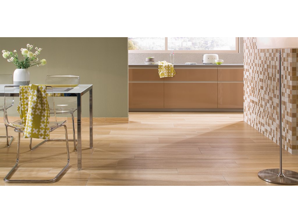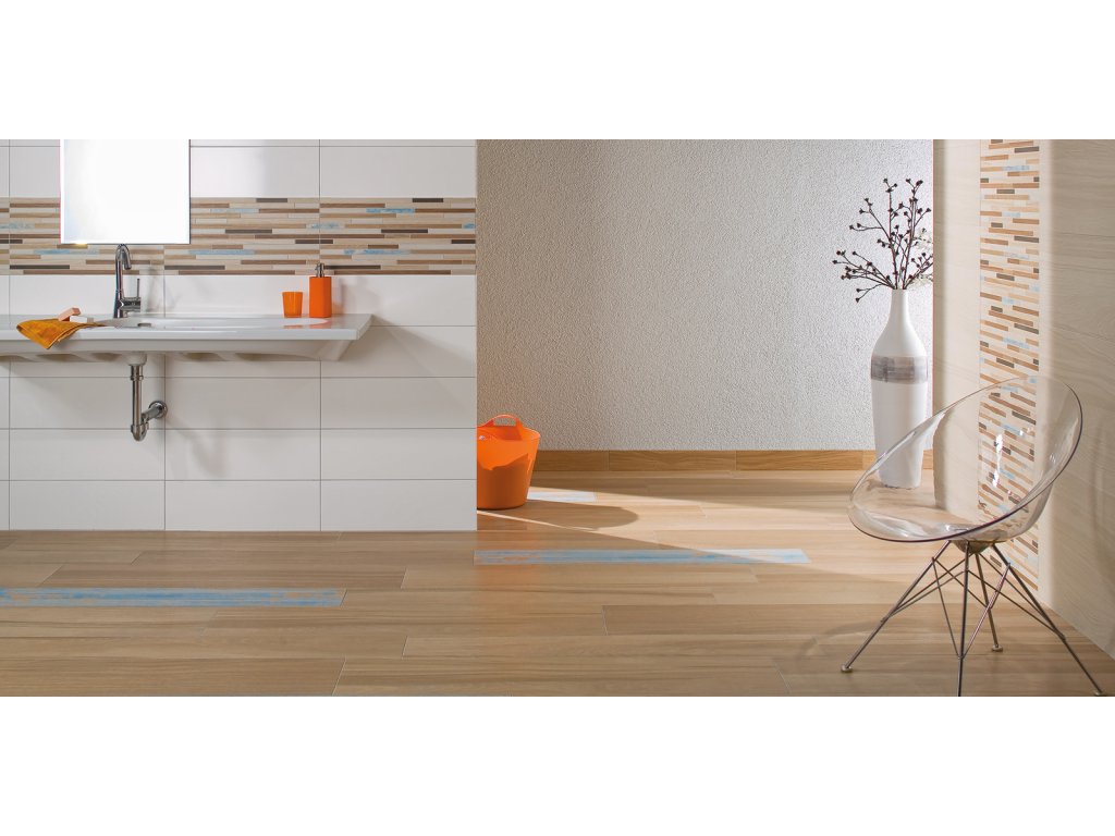 Precizní kresbu dřeva mají rektifikované velkoformátové dlaždice 30 x 120 cm a 20 x 120 cm, přičemž umožňují při pokládce různorodé skladby. Když použijete více formátů v jedné místnosti, pak velký formát zajistí celistvost a elegantní vzhled na podlaze, mozaika naopak oživí stěnu např. v kuchyni nebo koupelně. Atraktivní schodová tvarovka 30 x 120 cm a sokl umocňují neomezené použití nejen v bytovém interiéru. Board doporučujeme také do kombinace např. k sérii Air. Obklady této série vykazují záměrně velké a zcela nahodilé odchylky (V4), nepravidelnost designu je zcela originální.