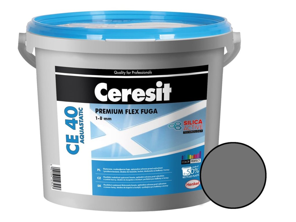 - Flexibilní spárovací hmota Ceresit CE 40 je obzvlášť vhodná na spárování obkladů a dlažby z keramiky, včetně gresové (nenasákavá), skla, mozaiky, přírodního kamene a mramoru (nenáchylnéh na probarvení)) na stěnách i podlahách. Ceresit CE 40 s inovativní polymerovou technologií Silica Active zaručuje: optimální čas vytvrzení a umývání v případě gresových i keramických dlažeb, vysokou odolnost proti vzniku trhlin a poškrábání a zároveň technologie Color Perfect zabezpečuje trvalou barevnost, dlouholetou vysokou kvalitu a dokonalý vzhled spárovací hmoty.