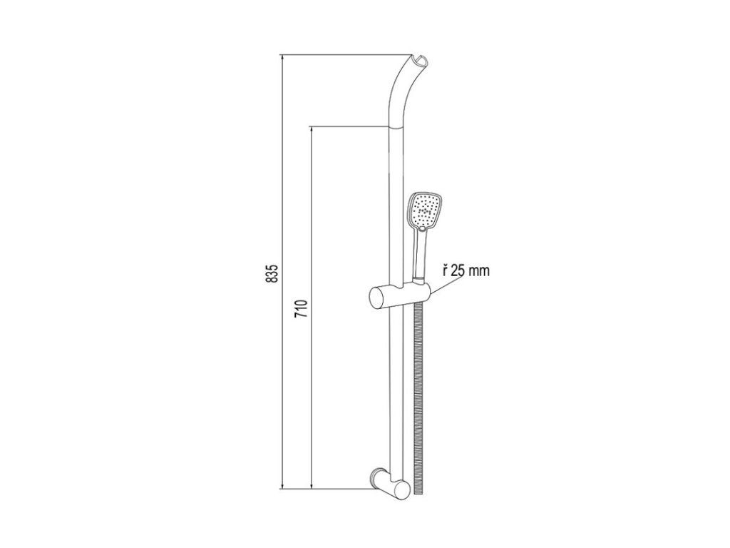 Tento posuvný držák sprchy umožňuje použití se záslepkou v horní části, čímž vzniká klasická rovná tyč, nebo je možné použít horní pevný držák sprchy.