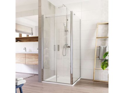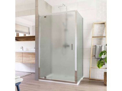 Hliníkové profily v barvě chrom, zasunovací dveře a dva pevné díly, sklo Point, síla skla 6 mm, obdélník, rozměr 1000x1200x1000 mm, výška 1900 mm.