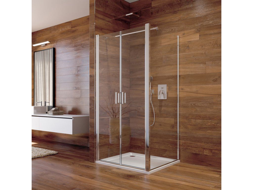 Sprchový kout, Lima, čtverec, dvoukřídlý, lítací,90x90 cm, chrom ALU, sklo Čiré