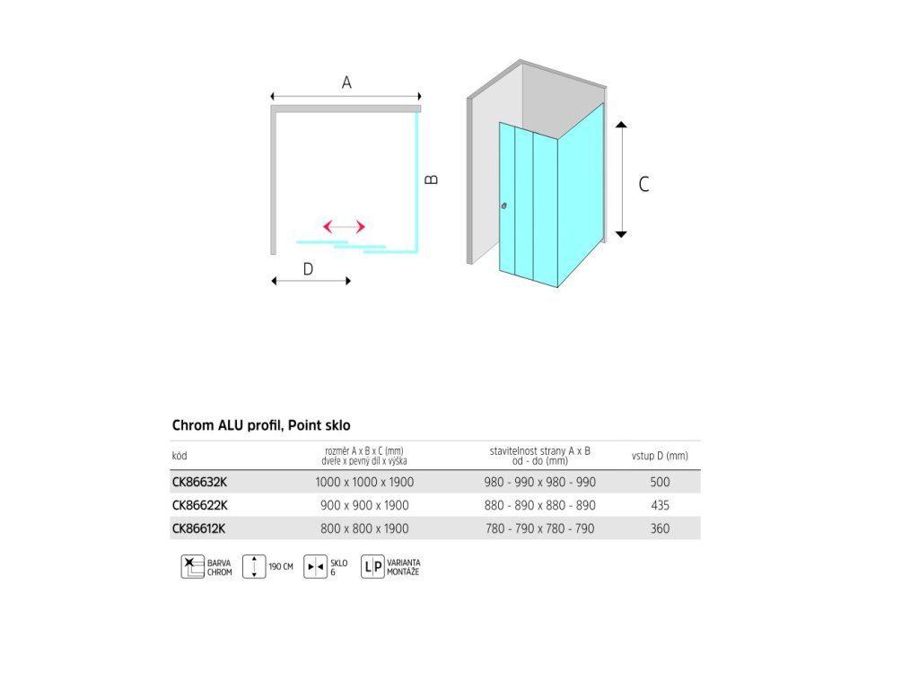 Lima je řada sprchových koutů Mereo, která navodí pocit čistého designu v každé moderní koupelně. Rovné hladké plochy, čisté linie a ostré hrany profilů umocňují pocit exkluzivity. Kvalitní skleněné výplně s bezpečnostním sklem. Tento kout nabízíme v neprůhledném provedení se sklem Point, které navodí lepší pocit intimity při sprchování.Snadné zavření a těsnost zajišťují stírací a silikonové lišty, opatřené na vstupní části magnetem, nejedná se však o hermeticky uzavřený výrobek.