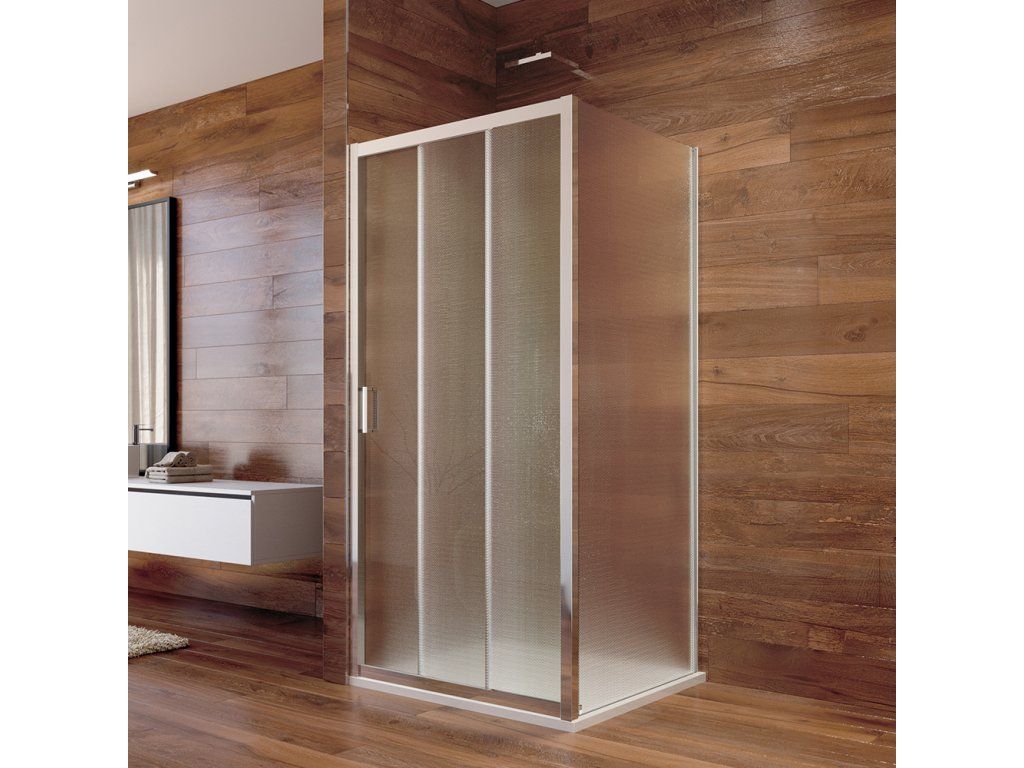 Sprchový kout, Lima, čtverec, trojdílné, zasunovací, 100x100 cm, chrom ALU, sklo Pointv