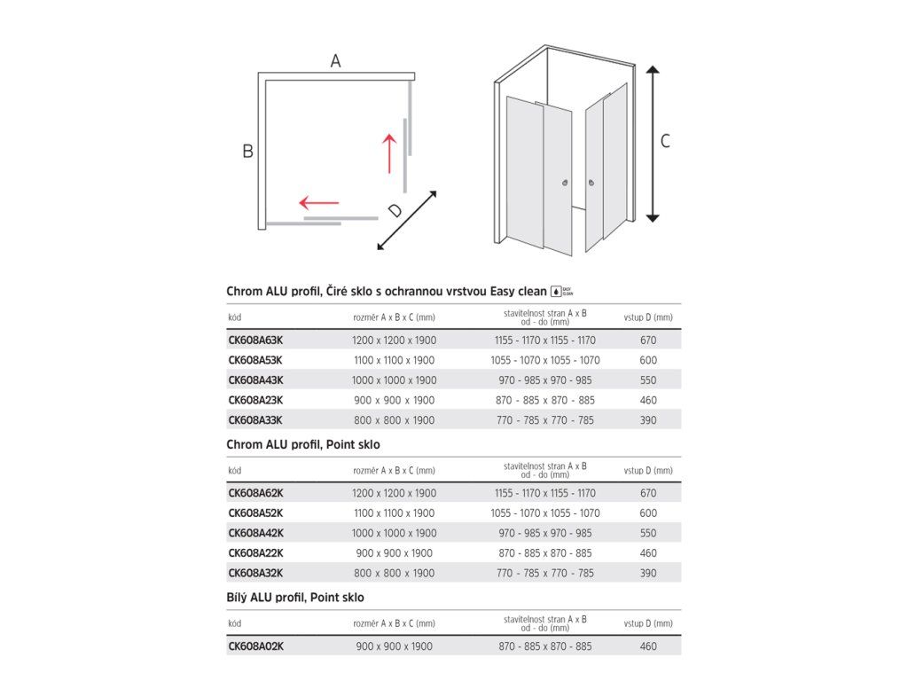 Lima je řada sprchových koutů Mereo, která navodí pocit čistého designu v každé moderní koupelně. Rovné hladké plochy, čisté linie a ostré hrany profilů umocňují pocit exkluzivity. Kvalitní skleněné výplně s bezpečnostním sklem. Tento kout nabízíme v provedení s čirým sklem.Snadné zavření a těsnost zajišťují stírací a silikonové lišty, opatřené na vstupní části magnetem, nejedná se však o hermeticky uzavřený výrobek.