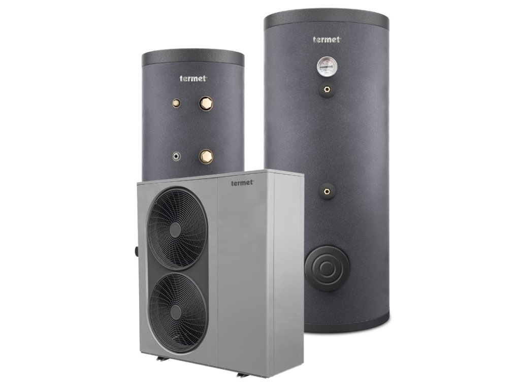 Invertorové tepelné čerpadlo Termet Heat Gold je velmi ekologický zdroj tepla určený zejména pro vytápění nových budov s nízkoteplotním, např. podlahovým vytápěním s tepelnou ztrátou až 15 kW (spolu s pomocným zdrojem tepla v období silných mrazů). Tepelné čerpadlo umožňuje také ohřev teplé vody, nebo i chlazení budovy v letních měsících.• konstrukce typu monoblok, možnost montáže pouze s topenářským živnostenským oprávněním, instalace mimo budovu• vysoce účinný invertorový kompresor od Mitsubishi, elektronický expanzní ventil• ekologické chladivo R32 s nízkým potenciálem globálního oteplování (GWP=675)• extrémně úsporné tepelné čerpadlo třídy A+++ (A7/W35)• možnost spolupráce s fotovoltaickými panely díky funkci SmartGrid• snadné ovládání chodu zařízení pomocí regulátoru HPMulti, který je vybaven dotykovým barevným displejem• možnost vzdálené správy tepelného čerpadla přes internet pomocí modulu ecoNET300• HPMulti ovladač a modul ecoNET300 jsou součástí tepelného čerpadla Akumulační a vyrovnávací nádrž omezuje časté zapínání a vypínání / cyklování tepelného čerpadla (což prodlužuje jeho životnost a snižuje spotřebu energie) a také vyrovnává rozdílné přítoky a otopné kapaliny (funkce anuloidu).• snadná montáž díky kompaktním rozměrům• energetická třída C• boční připojení vývodů• lze připojit více zdrojů tepla• vyrobeno z kvalitní oceli odolné proti korozi• vysoce kvalitní tepelná izolace ve formě polyuretanové pěny s tloušťkou 50 mm + estetický polyetylénový kryt• možnost připojení elektrického ohřívače• maximální provozní teplota 95 °C / tlak 6 barIzolovaný ohřívací zásobník teplé vody TUV s dvojitým trubkovým spirálovým výměníkem.• ideální pro akumulaci a ohřev teplé užitkové vody• vysoce kvalitní tepelná izolace ve formě polyuretanové pěny s tloušťkou 50 mm + estetický polyetylénový kryt• možnost připojení elektrického ohřívače• dvojitý vinutý trubkový výměník zajišťuje velkou teplosměnnou plochu pro správnou součinnost s tepelným čerpadlem• vyrobeno z vysoce kvalitní oceli potažené zevnitř smaltem (včetně spojů, smaltováno podle DIN4753-3), který spolu s hořčíkovou anodou zajišťuje vysokou ochranu proti korozi• dodává se s teploměrem a krytem teplotního čidla• maximální provozní teplota 95 °C / tlak 10 bar• hygienický atestDoplňkové parametry