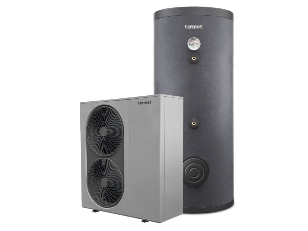 Invertorové tepelné čerpadlo Termet Heat Gold je velmi ekologický zdroj tepla určený zejména pro vytápění nových budov s nízkoteplotním, např. podlahovým vytápěním s tepelnou ztrátou až 12 kW (spolu s pomocným zdrojem tepla v období silných mrazů). Tepelné čerpadlo umožňuje také ohřev teplé vody, nebo i chlazení budovy v letních měsících.• konstrukce typu monoblok, možnost montáže pouze s topenářským živnostenským oprávněním, instalace mimo budovu• vysoce účinný invertorový kompresor od Mitsubishi, elektronický expanzní ventil• ekologické chladivo R32 s nízkým potenciálem globálního oteplování (GWP=675)• extrémně úsporné tepelné čerpadlo třídy A+++ (A7/W35)• možnost spolupráce s fotovoltaickými panely díky funkci SmartGrid• snadné ovládání chodu zařízení pomocí regulátoru HPMulti, který je vybaven dotykovým barevným displejem• možnost vzdálené správy tepelného čerpadla přes internet pomocí modulu ecoNET300• HPMulti ovladač a modul ecoNET300 jsou součástí tepelného čerpadla Izolovaný ohřívací zásobník teplé vody TUV s dvojitým trubkovým spirálovým výměníkem.• ideální pro akumulaci a ohřev teplé užitkové vody• vysoce kvalitní tepelná izolace ve formě polyuretanové pěny s tloušťkou 50 mm + estetický polyetylénový kryt• možnost připojení elektrického ohřívače• dvojitý vinutý trubkový výměník zajišťuje velkou teplosměnnou plochu pro správnou součinnost s tepelným čerpadlem• vyrobeno z vysoce kvalitní oceli potažené zevnitř smaltem (včetně spojů, smaltováno podle DIN4753-3), který spolu s hořčíkovou anodou zajišťuje vysokou ochranu proti korozi• dodává se s teploměrem a krytem teplotního čidla• maximální provozní teplota 95 °C / tlak 10 bar• hygienický atestDoplňkové parametry