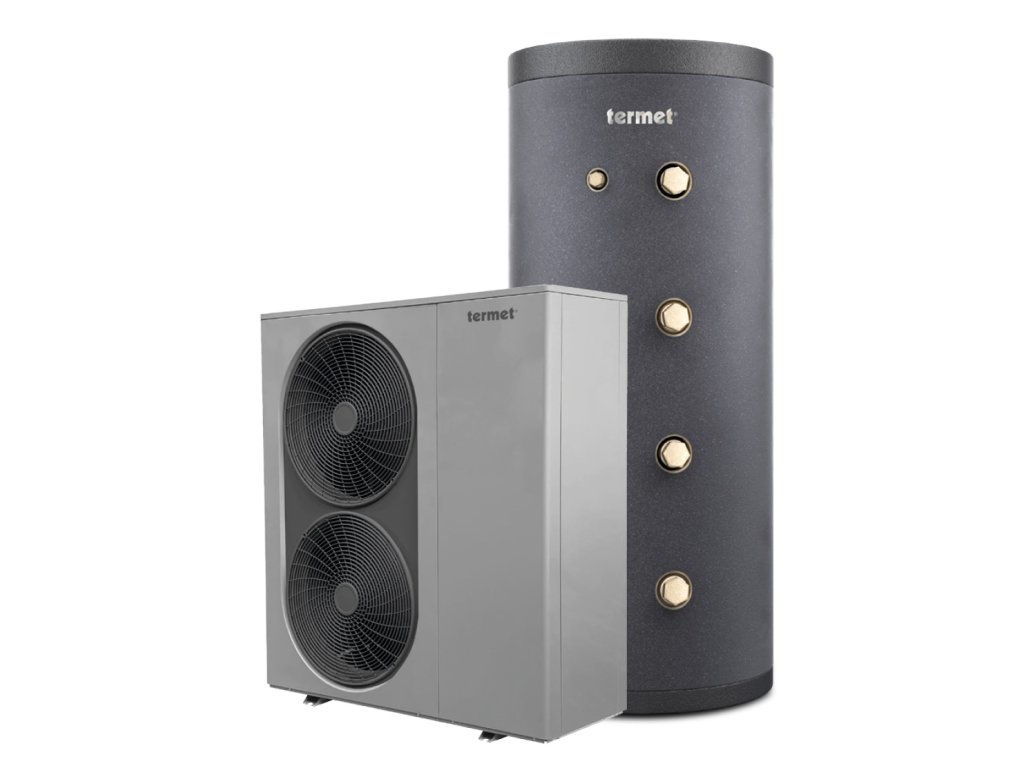 Invertorové tepelné čerpadlo Termet Heat Gold je velmi ekologický zdroj tepla určený zejménapro vytápění nových budov s nízkoteplotním, např. podlahovým vytápěním s tepelnou ztrátouaž 22 kW (spolu s pomocným zdrojem tepla v období silných mrazů). Tepelné čerpadlo umožňujetaké ohřev teplé vody, nebo i chlazení budovy v letních měsících.• konstrukce typu monoblok, možnost montáže pouze s topenářským živnostenskýmoprávněním, instalace mimo budovu• vysoce účinný invertorový kompresor od Mitsubishi, elektronický expanzní ventil• ekologické chladivo R32 s nízkým potenciálem globálního oteplování (GWP=675)• extrémně úsporné tepelné čerpadlo třídy A+++ (A7/W35)• možnost spolupráce s fotovoltaickými panely díky funkci SmartGrid• snadné ovládání chodu zařízení pomocí regulátoru HPMulti, který je vybaven dotykovýmbarevným displejem• možnost vzdálené správy tepelného čerpadla přes internet pomocí modulu ecoNET300• HPMulti ovladač a modul ecoNET300 jsou součástí tepelného čerpadla Akumulační a vyrovnávací nádrž omezuje časté zapínání a vypínání / cyklování tepelného čerpadla(což prodlužuje jeho životnost a snižuje spotřebu energie) a také vyrovnává rozdílné přítokya otopné kapaliny (funkce anuloidu).• snadná montáž díky kompaktním rozměrům• energetická třída C• boční připojení vývodů• lze připojit více zdrojů tepla• vyrobeno z kvalitní oceli odolné proti korozi• vysoce kvalitní tepelná izolace ve formě polyuretanové pěny s tloušťkou 50 mm + estetickýpolyetylénový kryt• možnost připojení elektrického ohřívače• maximální provozní teplota 95 °C / tlak 6 barDoplňkové parametry