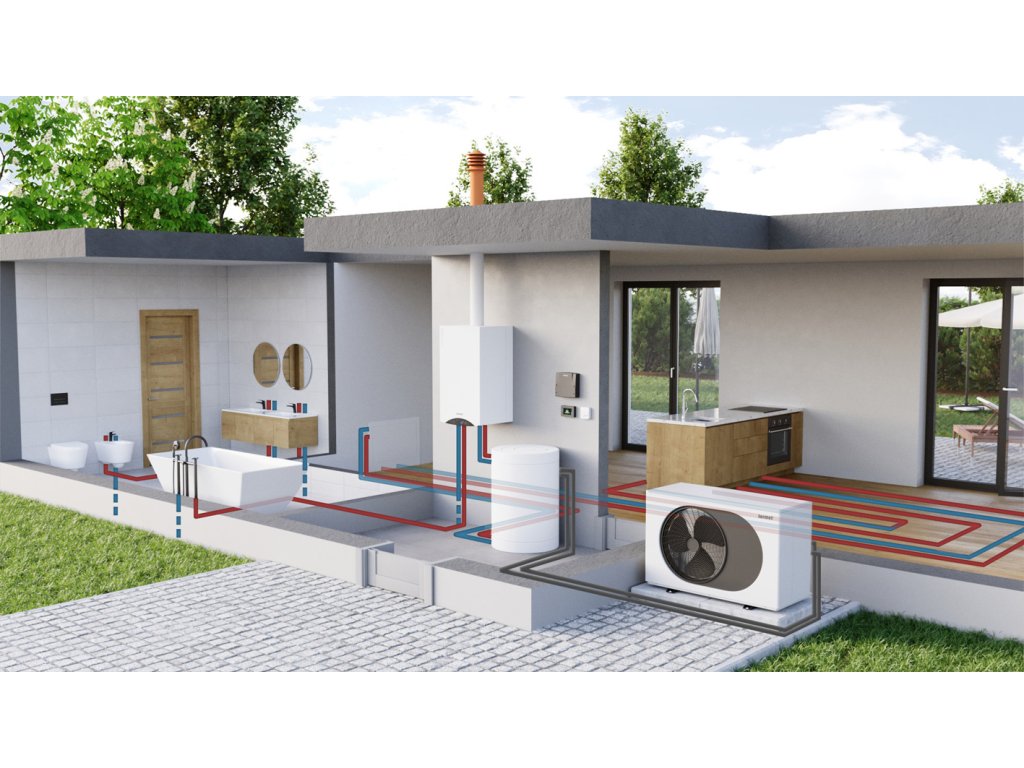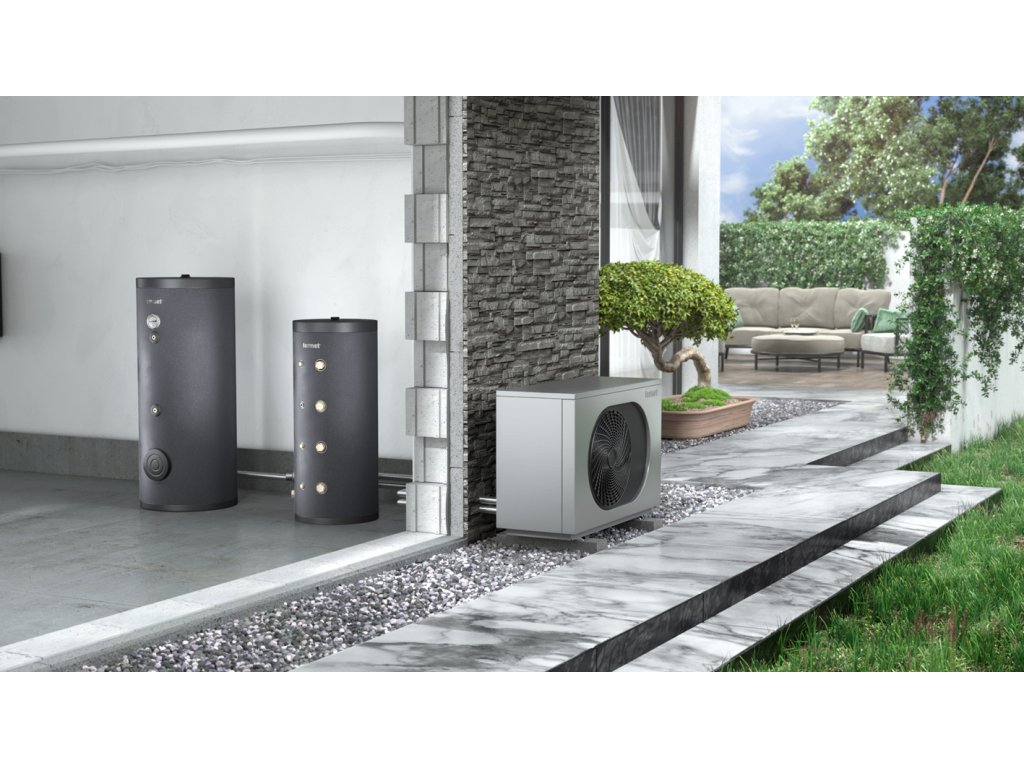 Invertorové tepelné čerpadlo Termet Heat Gold je velmi ekologický zdroj tepla určený zejména pro vytápění nových budov s nízkoteplotním, např. podlahovým vytápěním s tepelnou ztrátou až 9kW (spolu s pomocným zdrojem tepla v období silných mrazů). Tepelné čerpadlo umožňuje také ohřev teplé vody, nebo i chlazení budovy v letních měsících.•konstrukce typu monoblok, možnost montáže pouze s topenářským živnostenským oprávněním, instalace mimo budovu•vysoce účinný invertorový kompresor od Mitsubishi, elektronický expanzní ventil•ekologické chladivo R32 s nízkým potenciálem globálního oteplování (GWP=675)•extrémně úsporné tepelné čerpadlo třídy A+++ (A7/W35)•možnost spolupráce s fotovoltaickými panely díky funkci SmartGrid•snadné ovládání chodu zařízení pomocí regulátoru HPmulti, který je vybaven dotykovým barevným displejem•možnost vzdálené správy tepelného čerpadla přes internet pomocí modulu ecoNET300•HPmulti ovladač a modul ecoNET300 jsou součástí tepelného čerpadlaDoplňkové parametry