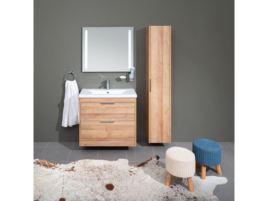 Vigo, koupelnová skříňka s keramickým umyvadlem 51 cm, dub Riviera
