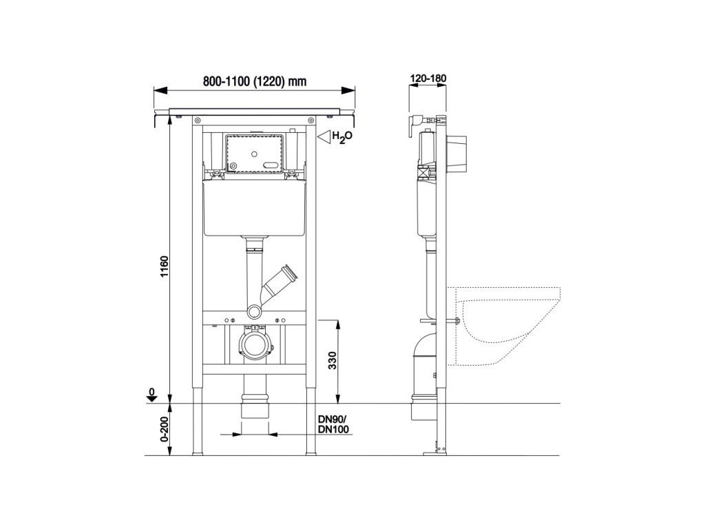 • Pro montáž závěsného WC s roztečí 18cm nebo 23cm