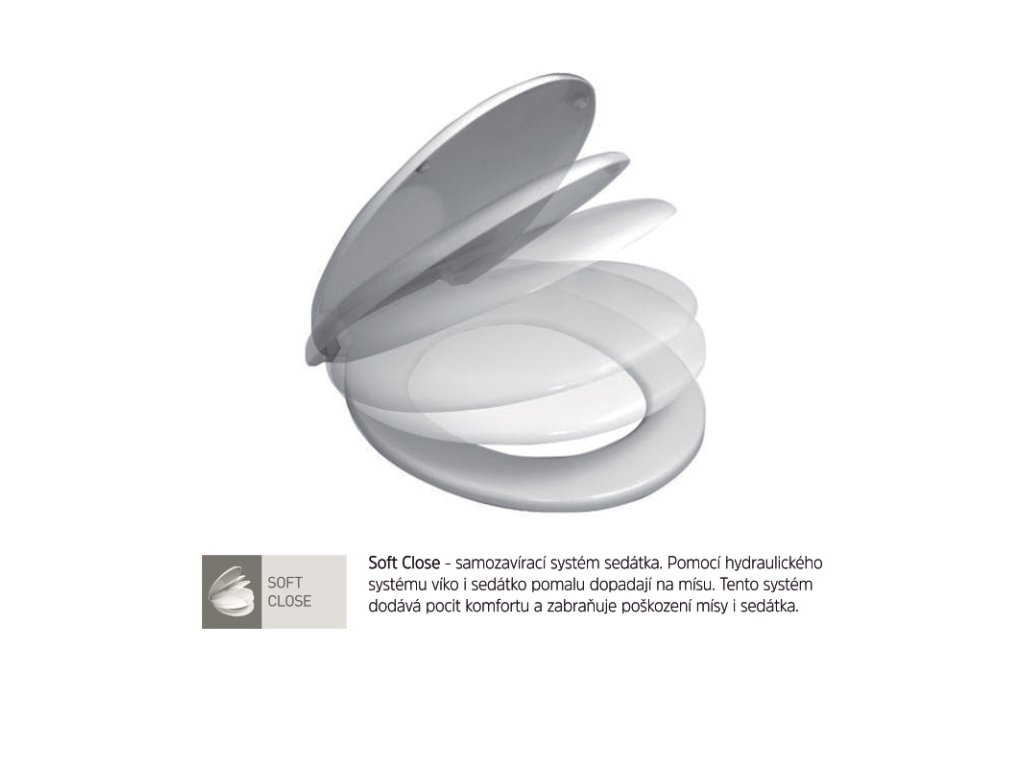 - soft close: samozavírací systém (pozvolné sklápění sedátka i víka)