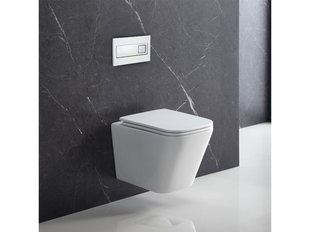 WC set - Rimless WC hranaté, modul pro sádrokarton, chrom hranaté tlačítko lesklé