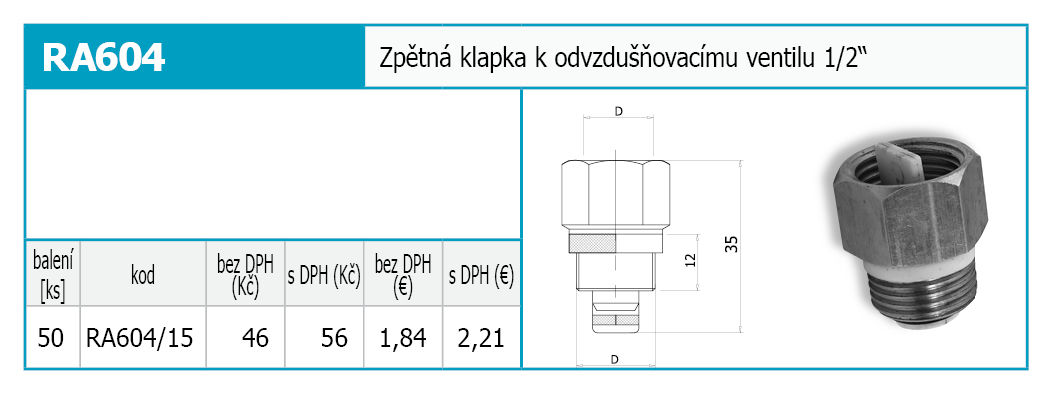 Zpětná klapka k odvzdušňovacímu ventilu 1/2"