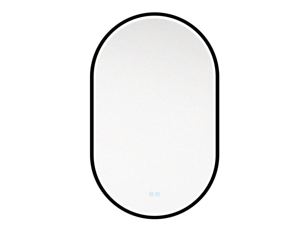 Zrcadlo oválné, 50x80 cm, LED osvětlení a odmlžování, černý rám